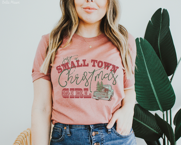 Just A Small Town Christmas Girl Truck (Green Red Font) 1638 DTF TRANSFER
