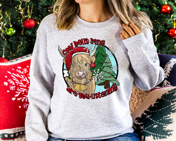 Cow Bells Ring And You Listening Christmas Trees Cow with Santa Hat (Red Writing) 280 DTF TRANSFER