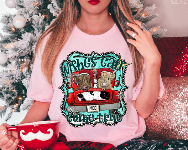 Wishes Can Come True Red Truck Cow Print Cows Santa Hat (Teal Writing) 68768 DTF TRANSFER