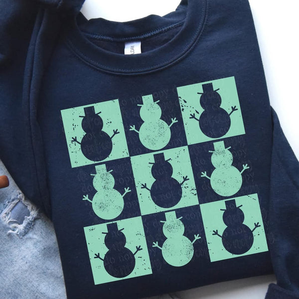 Green checkered snowman collage (TTD) 75130 DTF transfer