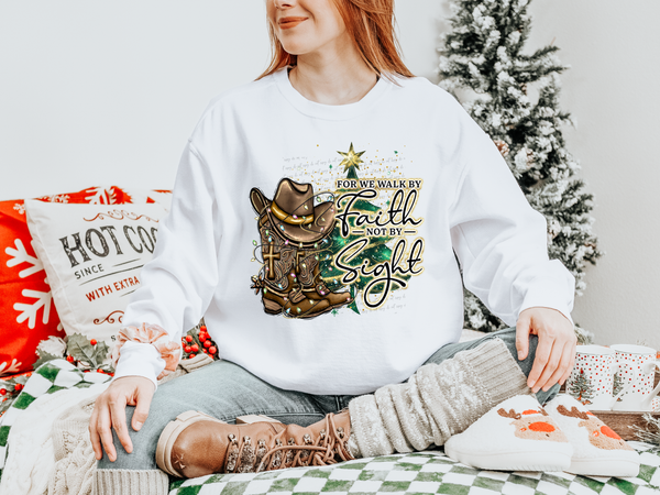 For We Walk By Faith Not By Sight Western Christmas 74455 DTF Transfer