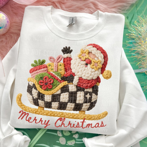 Faux Yarn Merry Christmas Checker Sleigh (SBB) DTF Transfer