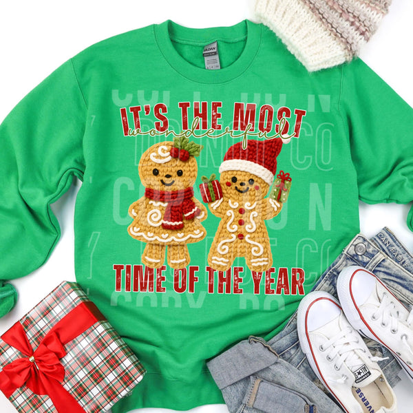 Faux Yarn Wonderful Time of the year gingerbread (SBB) DTF Transfer