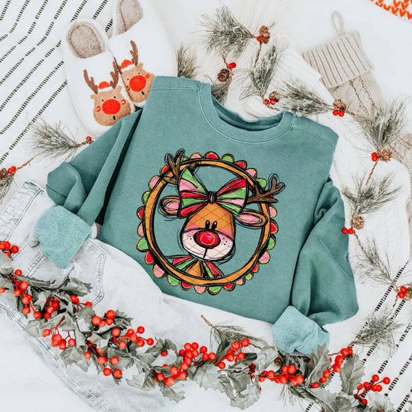 Reindeer Frame and Bow (SDD) DTF Transfer