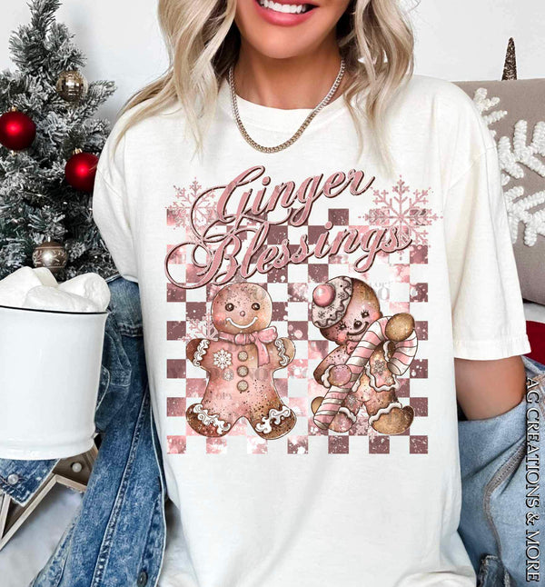Ginger blessings (gingerbread men and checkered background) 16619 DTF Transfer