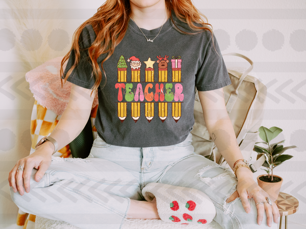 Teacher with christmas pencils 14556 DTF Transfer