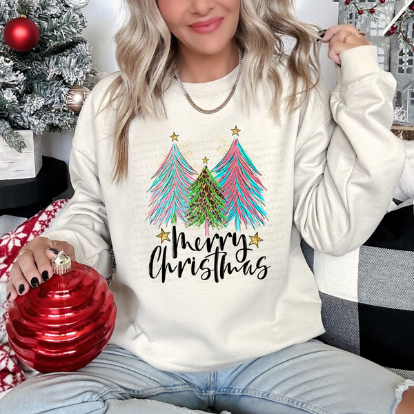 Merry Christmas Trees Leopard and Colorful Trees 115839 DTF Transfer