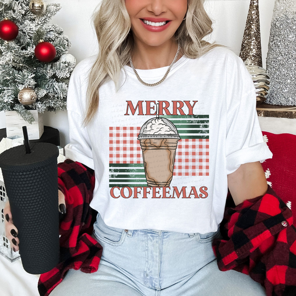 Merry Coffeemas Coffee Red Checkered Background and Green Lines 115841 DTF Transfer