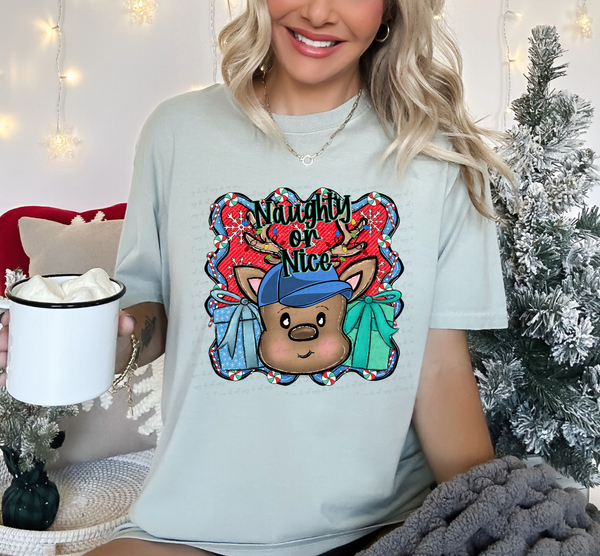 Naughty or Nice Boy Reindeer Blue Hat 115842 DTF Transfer