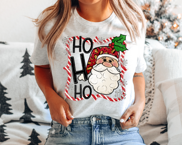 Ho Ho Ho Leopard Santa Holly Red White Frame 1098 DTF TRANSFER