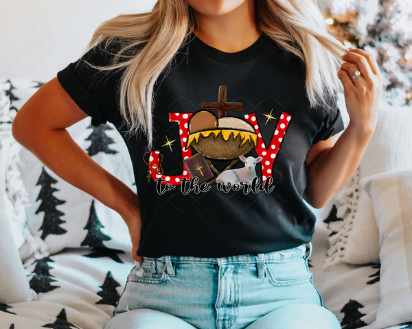 Joy To the World Light Skin Manger Cross Red and White Polka Dots Lamb Bible 8447 DTF TRANSFER