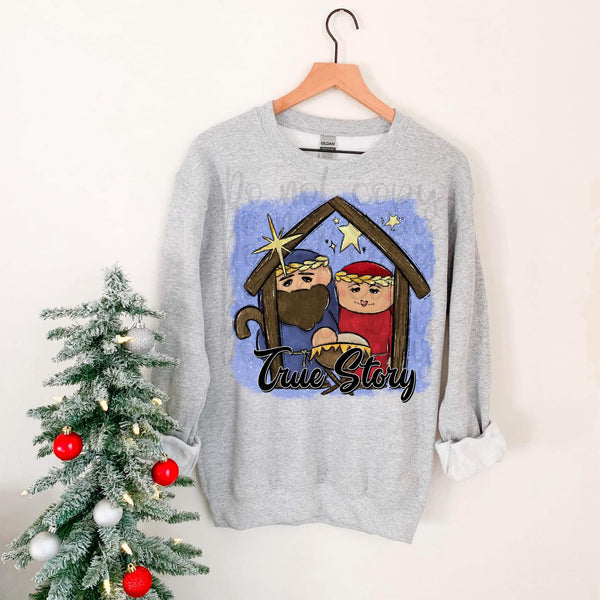 Oh, Holy Night The Stars Are Shining Brightly Manger Blue Background 112295 DTF TRANSFER