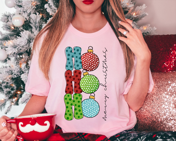 Ho Ho Ho Merry Christmas Christmas Bulbs Green Red Teal 1009 DTF TRANSFER