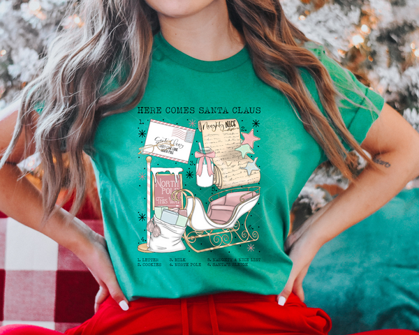 Here Comes Santa Clause Check List North Pole Sign Santa Sleigh 400 DTF TRANSFER