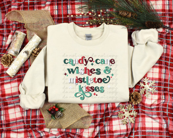 Candy cane wishes & mistletoe kisses (colorful) 8684 DTF TRANSFER