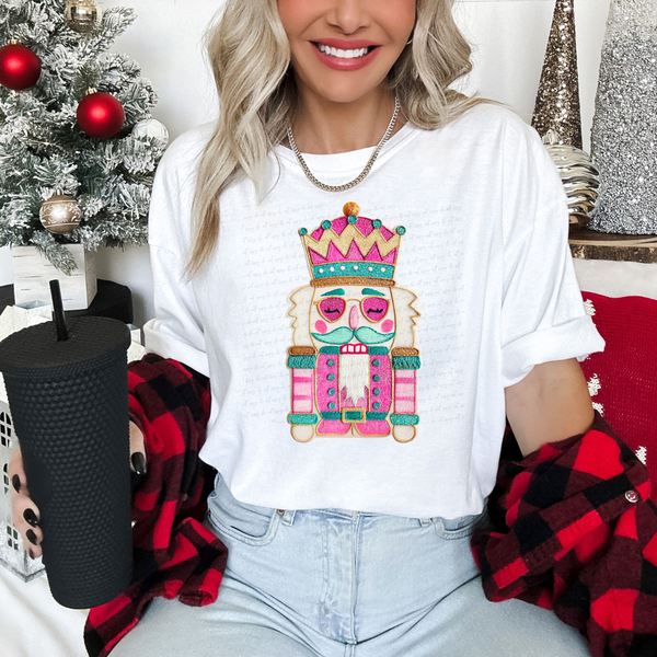 Pink Nutcracker Patchwork Faux Glitter 117354 DTF TRANSFER