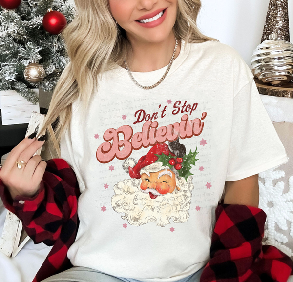 Believe In Santa Smiley Star Eyes Santa Hat Leopard Print 114985 DTF Transfer