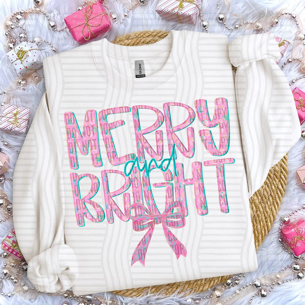 Merry and Bright Pink Ornament Christmas Tree Bow (Caplinger) DTF Transfer