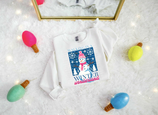 Walking in a Winter wonderland navy and pink snowman (SCG) DTF Transfer