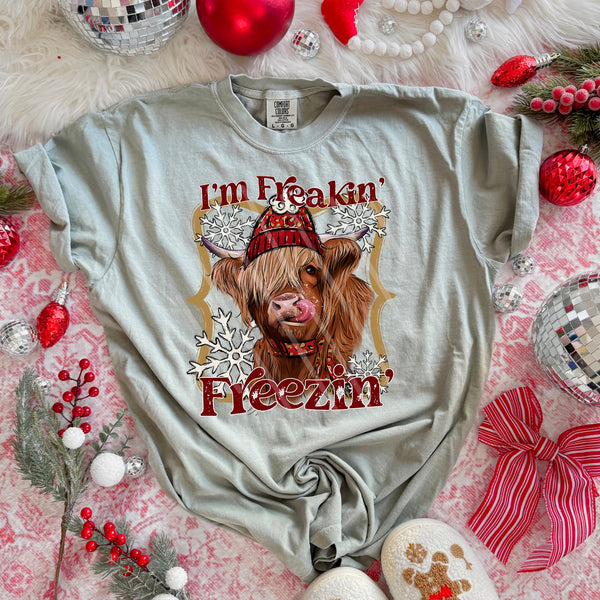 Freakin Freezing Highland cow with beanie 113964 DTF Transfer