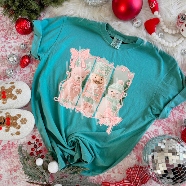 Reindeer Nutcracker and Snowman Pink Bow Frame (MZ) 113461 DTF Transfer