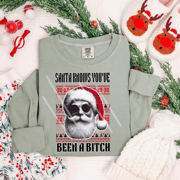 Santa knows you’ve been a bitch sweater pattern santa (MZ) 113535 DTF Transfer