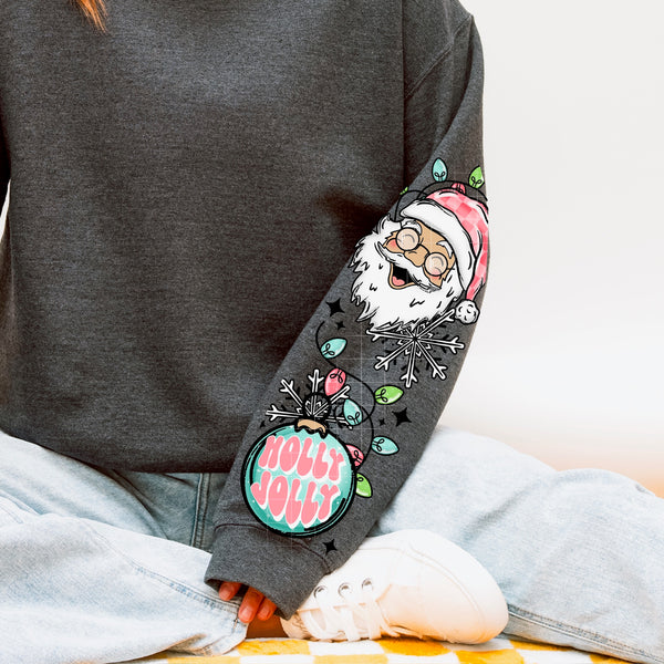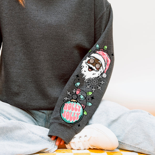 Merry Christmas colorful Santa darker skin (SLEEVE) (CSC) DTF Transfer