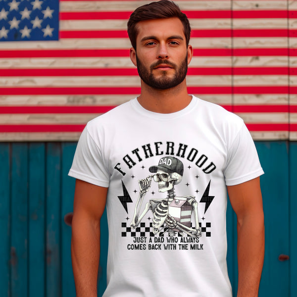 Fatherhood Just A Dad Who Always Comes Back With The Milk 104659 DTF transfer