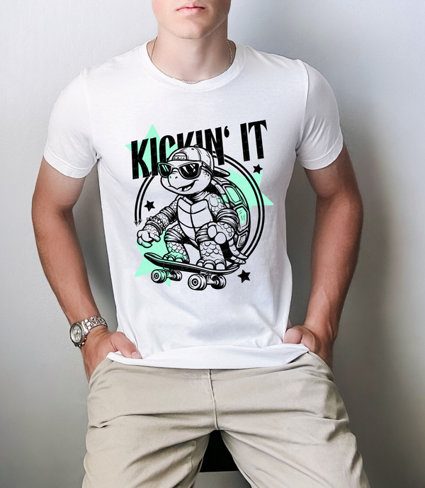 Kickin It Skateboard Turtle Black Font 111473 DTF transfer