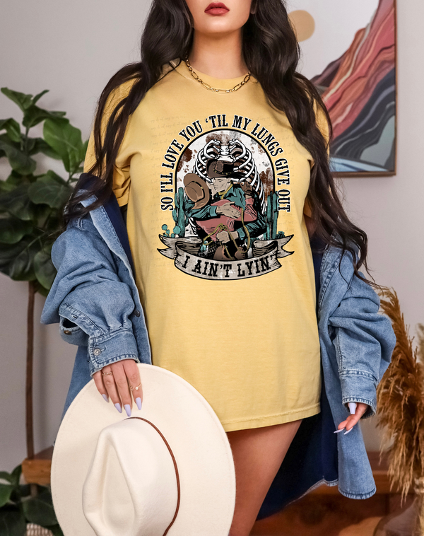 So I'll Love You Til My Lungs Give Out I Ain't Lyin' Ribcage Cowgirl and Cowboy 116356 DTF Transfer