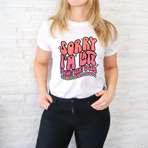 Sorry I'm Late I Didn't Want To Come Retro Checkered Smiley 116358 DTF Transfer