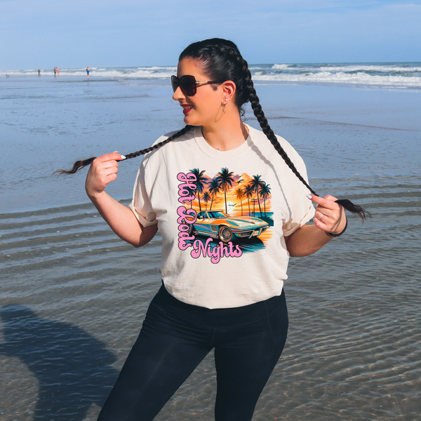 Hot Rod Nights Car Palm Trees Pink Font 117796 DTF transfer
