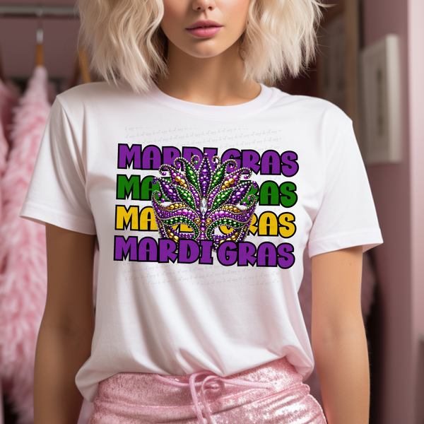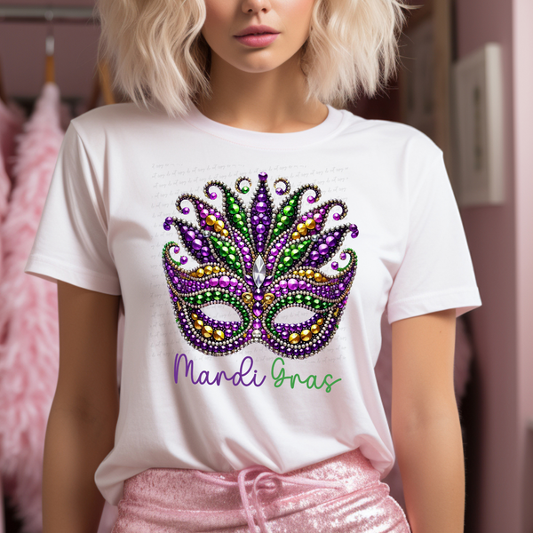 Mardi Gras Stacked Faux Rhinestone Mask 117799 DTF transfer