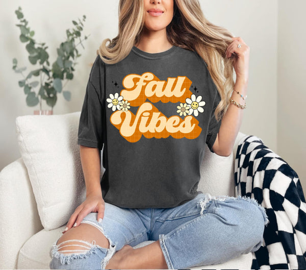 Fall vibes retro with flowers 107956 DTF transfer