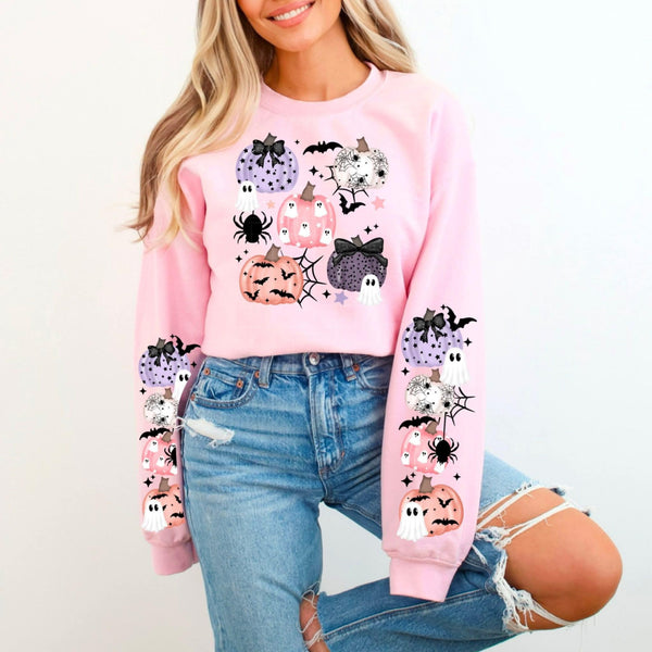 Girly Halloween pumpkins sleeve (CSC) 107829 DTF transfer