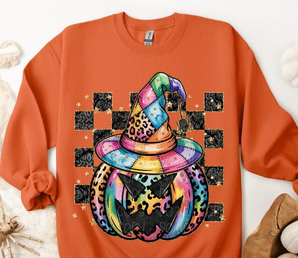 Leopard colorful pumpkin checkered with hat digi DTF Transfer