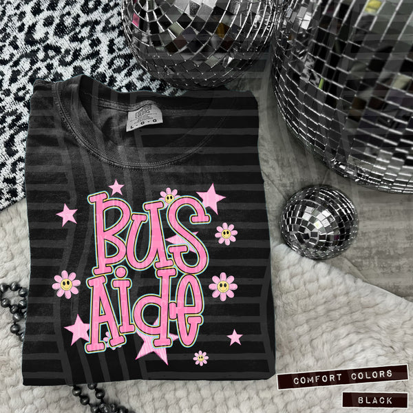 Bus Aide Pink Flowers And Stars 104914 DTF transfer
