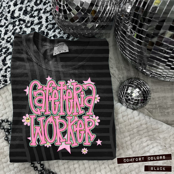 Cafeteria Worker Pink Flowers And Stars 104920 DTF transfer