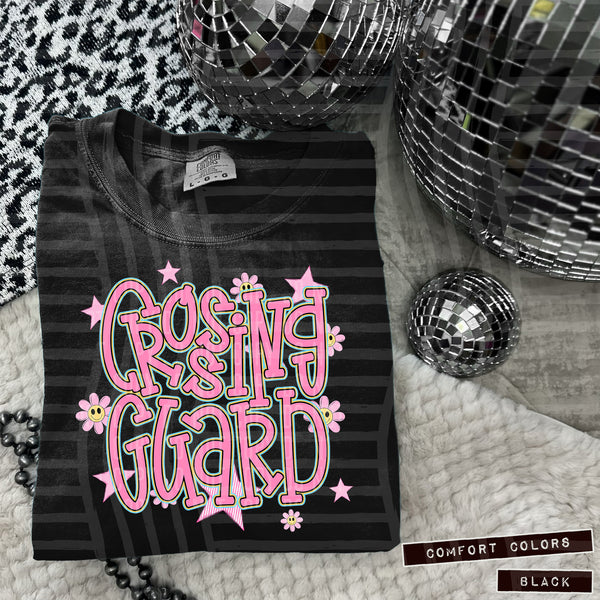 Crossing Guard Pink Flowers And Stars 104936 DTF transfer