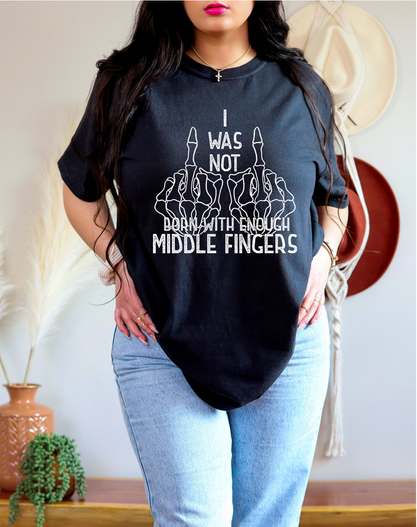 I Was Not Born with Enough Middle Fingers Skellie Hand BLACK 116829 DTF Transfer