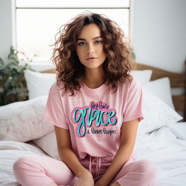 By His Grace I Have Hope Pink Blue 81975 DTF Transfer