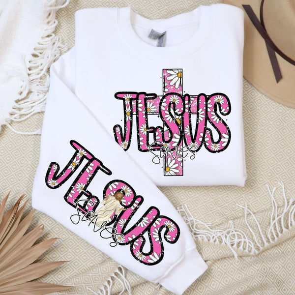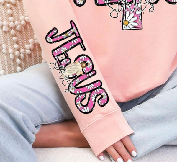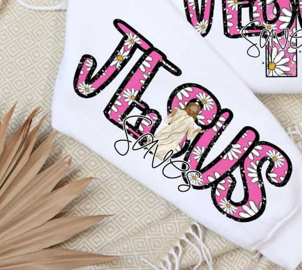 Jesus saves pink with daisies FRONT ONLY (VIRGO) 85191 DTF transfer