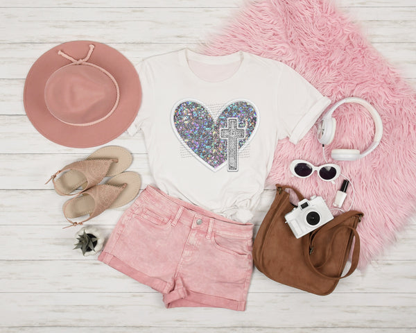 Sequin faux cross SILVER 22418 DTF transfer