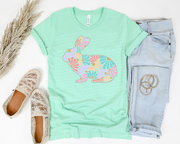 Dont worry be hoppy floral smiley bunny 21669 DTF transfer