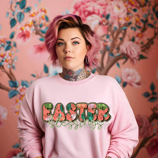 Easter blessings pink and sequin 19724 DTF Transfer