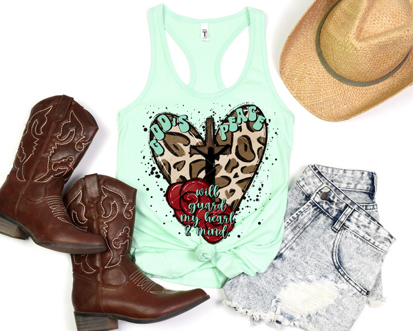 Coffee gets me started Jesus keeps me going leopard print words DTF TRANSFER