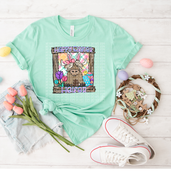 Happy Easter Heifer in frame with bunny ears DTF TRANSFER