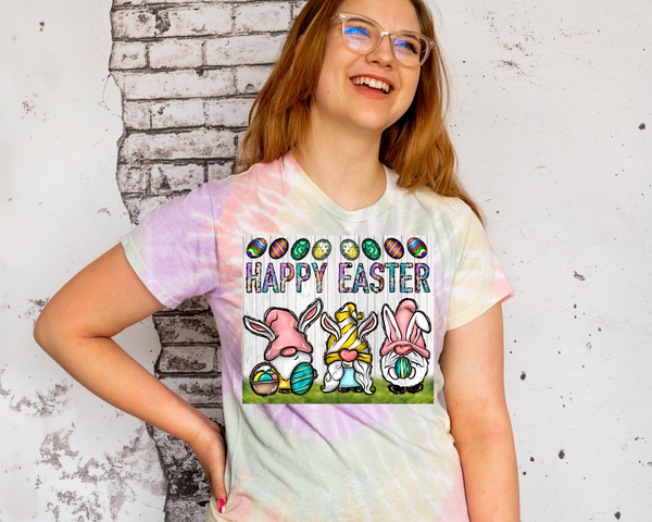 Happy Easter (3 gnomes, Easter eggs, pastel colors) 1472 DTF TRANSFER