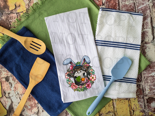 Watercolor Bunny face with glasses and head band bow with pink floral swag 1894 DTF TRANSFER
