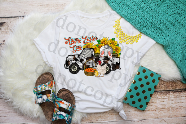 Happy Easter Day cowhide truck with bunny and chicken DTF TRANSFER